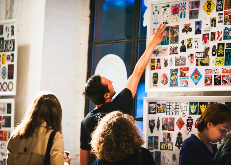 На выставке были представлены стикеры, приехавшие в столицу из первого в мире музея стикеров в Берлине. Основал музей стикеров Hatch Sticker Museum Оливер Баудах.