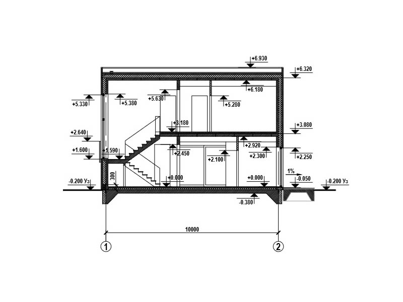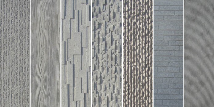 1. Материал стен и кровли: трехслойные железобетонные панели (несущий слой — бетон толщиной 120 мм, утеплитель — 200 мм каменной ваты, фасад — бетонная стена толщиной 80 мм с фактурой снаружи). Все панели изготавливаются на заводе и поставляются на объект готовыми к монтажу. Для создания бетонной фактуры применяются различные полиуретановые матрицы-формы, при помощи которых создается надежный бетонный фасад на любой вкус. В проекте есть элементы, которые остаются натуральными бетонными (делается только пропитка защитными составами), фактурная часть фасада красится в различные цвета.